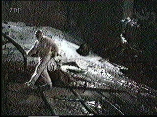 Im Innern des Reaktors. Worauf der Mann herumläuft, ist der biologische Schutz des Reaktors, eine 2500 Tonnen schwere Betonplatte, die von der Wucht der Explosion hochgeschleudert wurde.