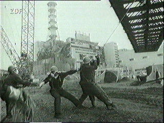 Knochenarbeit im Schatten des noch immer offenliegenden, strahlenden Reaktors.